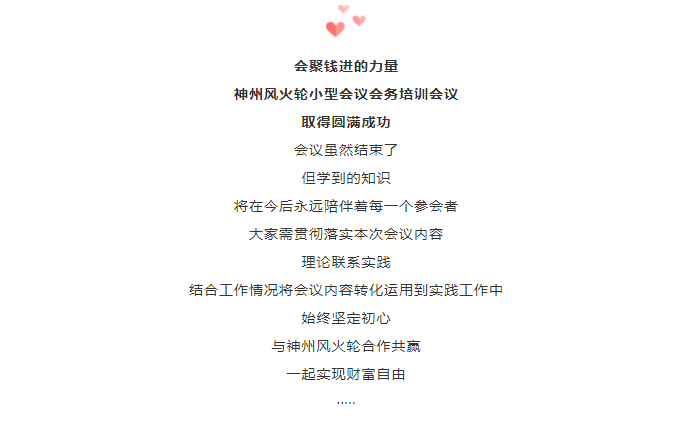 會(huì)聚錢進(jìn)的力量——神州風(fēng)火輪小型會(huì)議會(huì)務(wù)落地培訓(xùn)會(huì)圓滿成功!