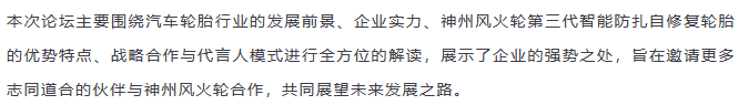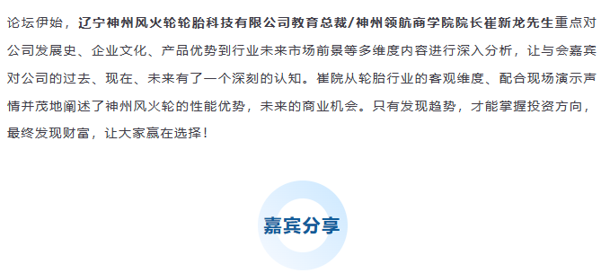 【盤錦站】“倡導安全出行,打造千城萬店”神州風火輪智能防扎自修復輪胎財富論壇