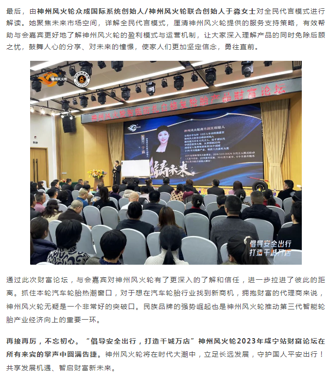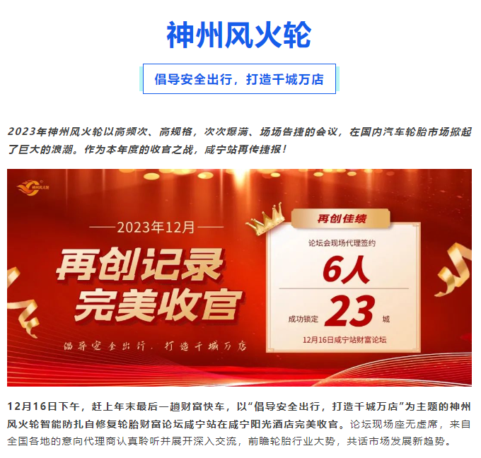 【咸寧站】“倡導安全出行,打造千城萬店”神州風火輪智能防扎自修復輪胎財富論壇