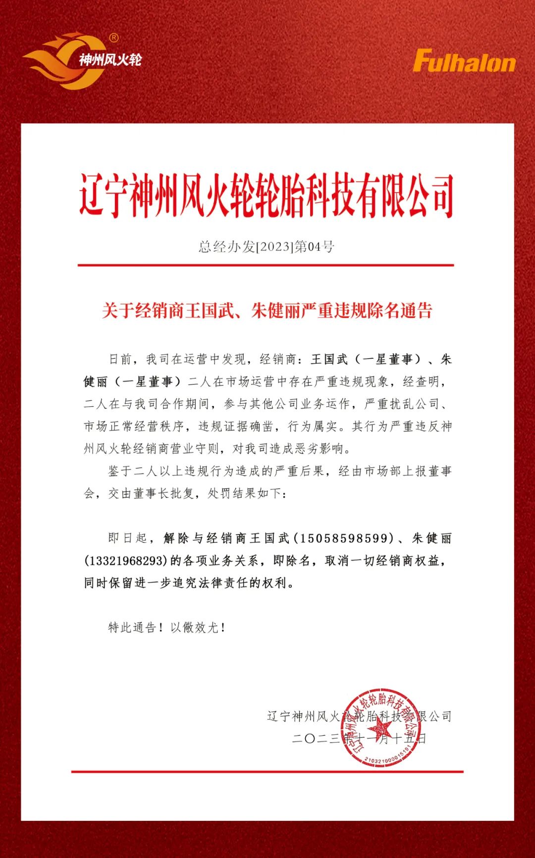 關(guān)于神州風火輪經(jīng)銷商嚴重違規(guī)違紀的處理通告!