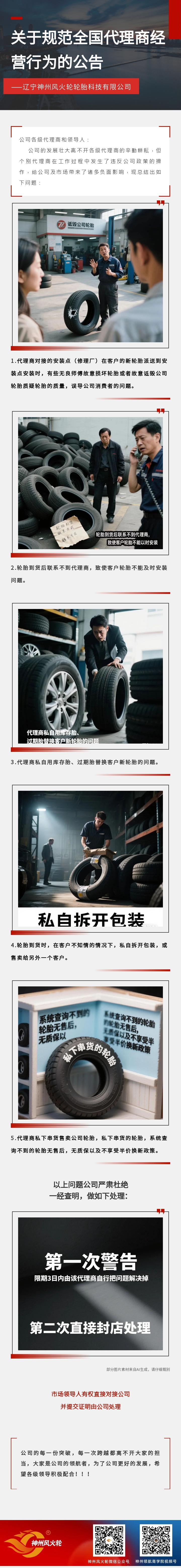 神州風(fēng)火輪《關(guān)于規(guī)范全國(guó)代理商經(jīng)營(yíng)行為的公告》