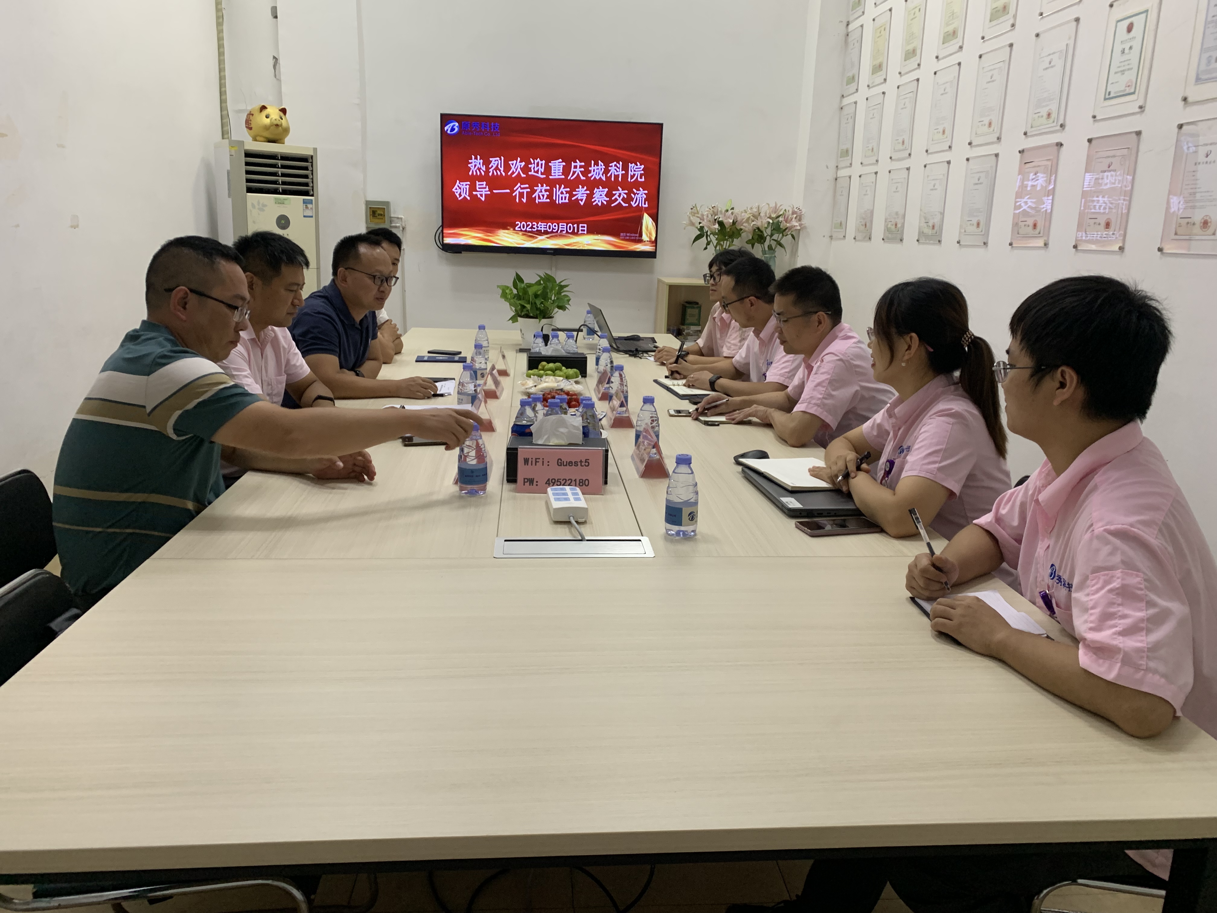 9月1日下午,重慶城市科技學(xué)院學(xué)生處副處長(zhǎng)吉春元、教務(wù)處副處長(zhǎng)劉洪鵬、電??程與智能制造學(xué)院黨總?副書(shū)記李曉飛、電??程與智能制造學(xué)院副院長(zhǎng)張玉林一行4人,為深耕校企合作蒞臨我司座談交流,并授牌我司“優(yōu)秀校外實(shí)習(xí)實(shí)訓(xùn)基地”及頒發(fā)”優(yōu)秀實(shí)訓(xùn)基地榮譽(yù)證書(shū)”。由原秀科技副總經(jīng)理莊靜雄、副總經(jīng)理鄧瑞華、經(jīng)理彭世花熱情接待并陪同參觀。