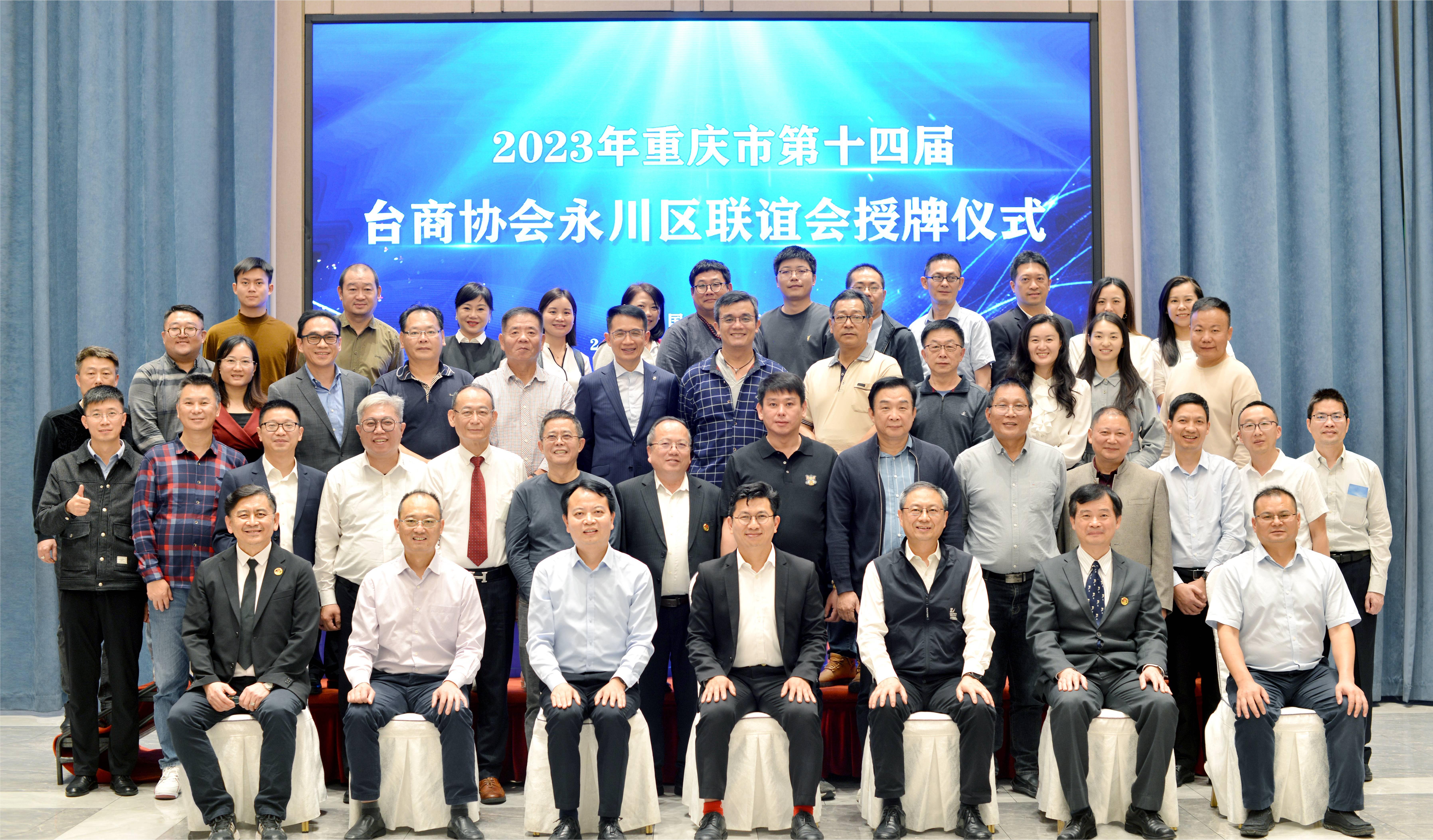 2023年10月20日下午,重慶市臺灣同胞投資企業(yè)協(xié)會第十四屆永川區(qū)聯(lián)誼會授牌儀式于重慶市永川區(qū)隆重舉行,重慶市委臺辦副主任劉建南、重慶市委臺辦經(jīng)濟(jì)處處長顏臺奎、重慶市臺灣同胞投資企業(yè)協(xié)會會長黃光志先生、臺協(xié)第十四屆永川區(qū)聯(lián)誼會會長林溪彬先生、永川區(qū)委常、統(tǒng)戰(zhàn)部部長陳小東先生等出席并致辭,授牌儀式同時有幸邀請到了重慶市臺灣同胞投資企業(yè)協(xié)會常務(wù)副會長丁啟民先生、副會長陳金隆先生、副會長梁輝炎先生、副會長臧鳴遠(yuǎn)先生、副會長李委憲先生、副秘書長吳國弦先生及理監(jiān)事單位代表、永川區(qū)臺商臺胞代表21人,共賀臺協(xié)永川區(qū)聯(lián)誼會的正式授牌。
