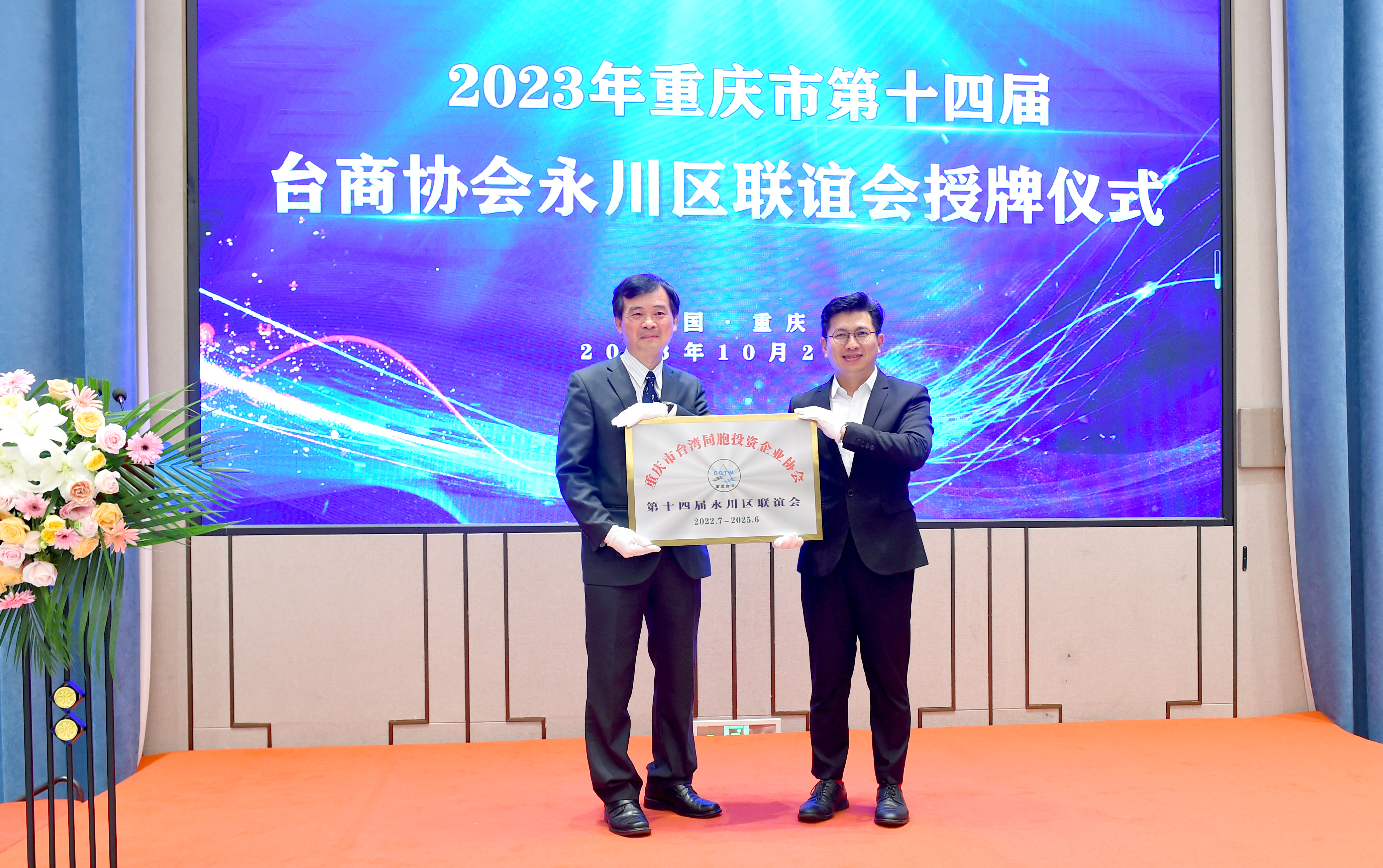2023年10月20日下午,重慶市臺灣同胞投資企業(yè)協(xié)會第十四屆永川區(qū)聯誼會授牌儀式于重慶市永川區(qū)隆重舉行。