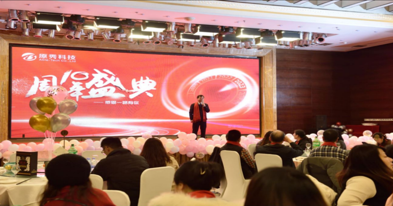 2023年,原秀科技成立十周年,十年歷程,激情昂揚;十年風雨,共創(chuàng)輝煌。2023年2月25日,原秀科技“十年銳變,十年新章”十周年主題活動于永川區(qū)兩江假日酒店隆重舉行。公司特邀嘉賓、重要合作伙伴代表、優(yōu)秀員工代表等200余人參加本次慶典活動。